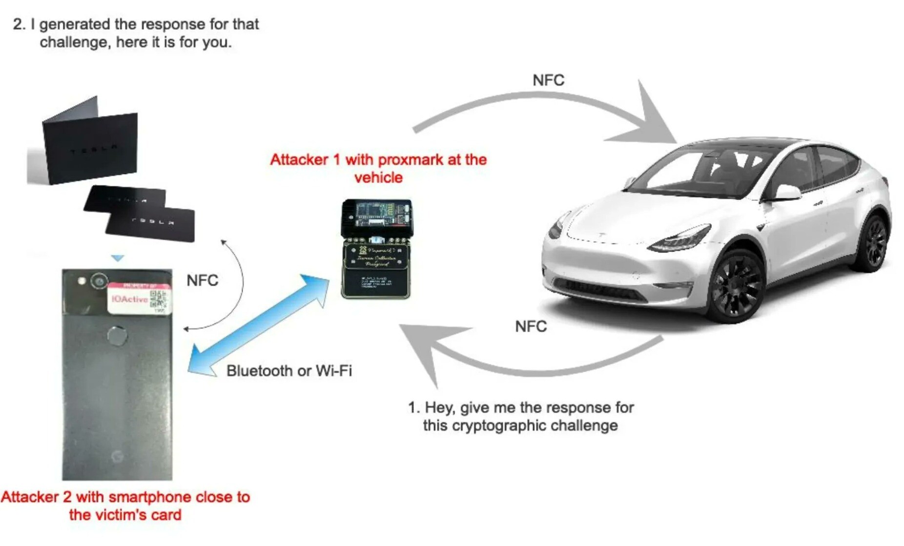 White paper link: https://act-on.ioactive.com/acton/attachment/34793/f-6460b49e-1afe-41c3-8f73-17dc14916847/1/-/-/-/-/NFC-relay-TESlA_JRoriguez.pdf