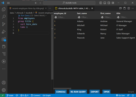 βοΈ DuckDBPro Tools will work with our new Run Query #PRQLCodeLens π