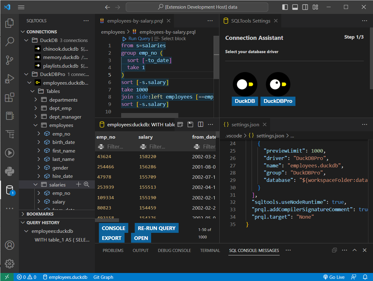 #sqltools #duckdb #prqlpro #prqlcodelens #prql