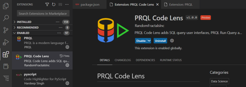 π₯³ Announcing our 1st #PRQLProTools release with #PRQLCodeLens to connect #PRQL directly to #SQLTools in #VSCode.