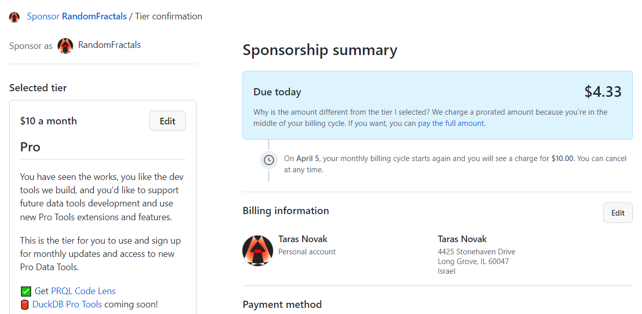 willing data souls and explorers can try our awesome #PRQLCodeLens & #DuckDBProTools for $1.33 today. That #ProTools sub goes back to $10 tomorrow, as github prorates their monthly tiers and dues collected ... #PRQL #DuckDB #SQLTools πππ ...