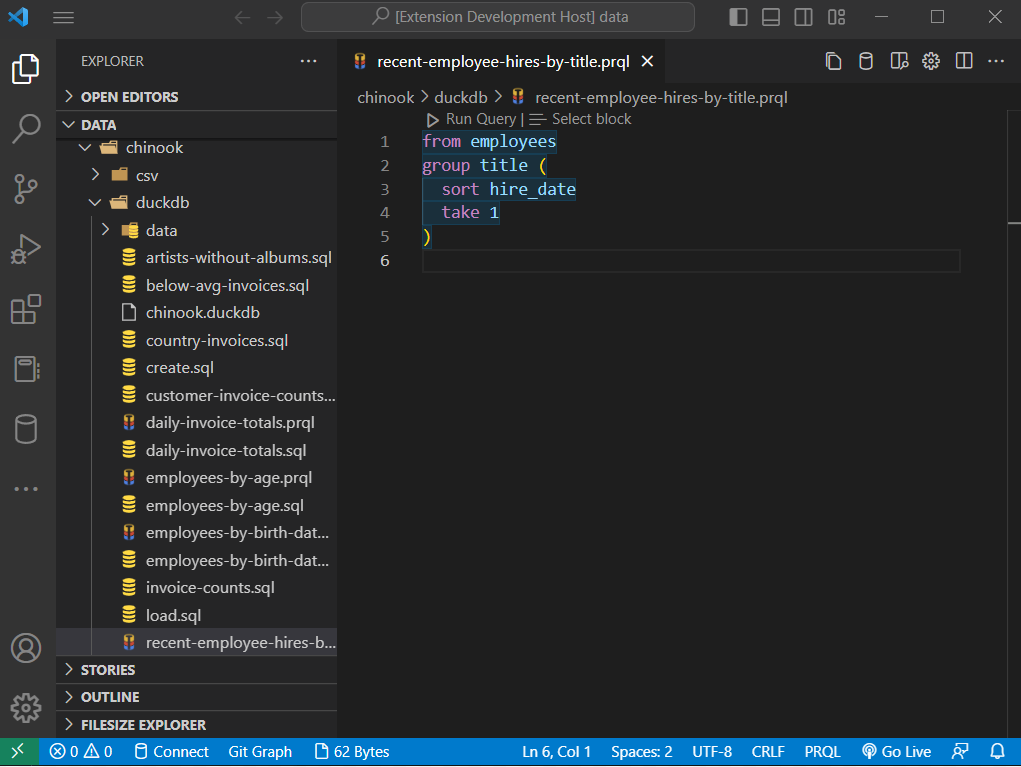 π§ββοΈ Behold! βΆοΈ Run Query straight from a #PRQL document integrated with #DuckDBPro Tools we'll make available to Pro sponsors in our new #ProTools soon.