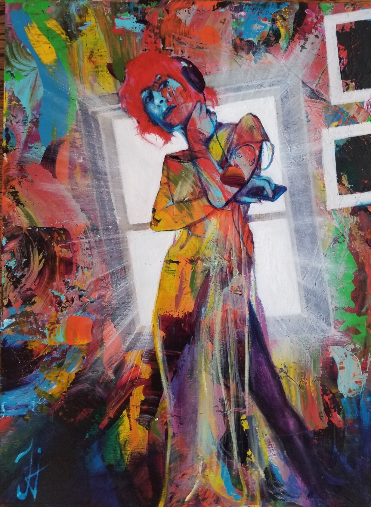 Made this painting, it portrays dancing along the fabric of space-time with freedom and grace, seeing every possible past, present, and future moment and experience around you all at once, expanding outward into infinity, while also embracing the single ever-changing moment in time where you are.