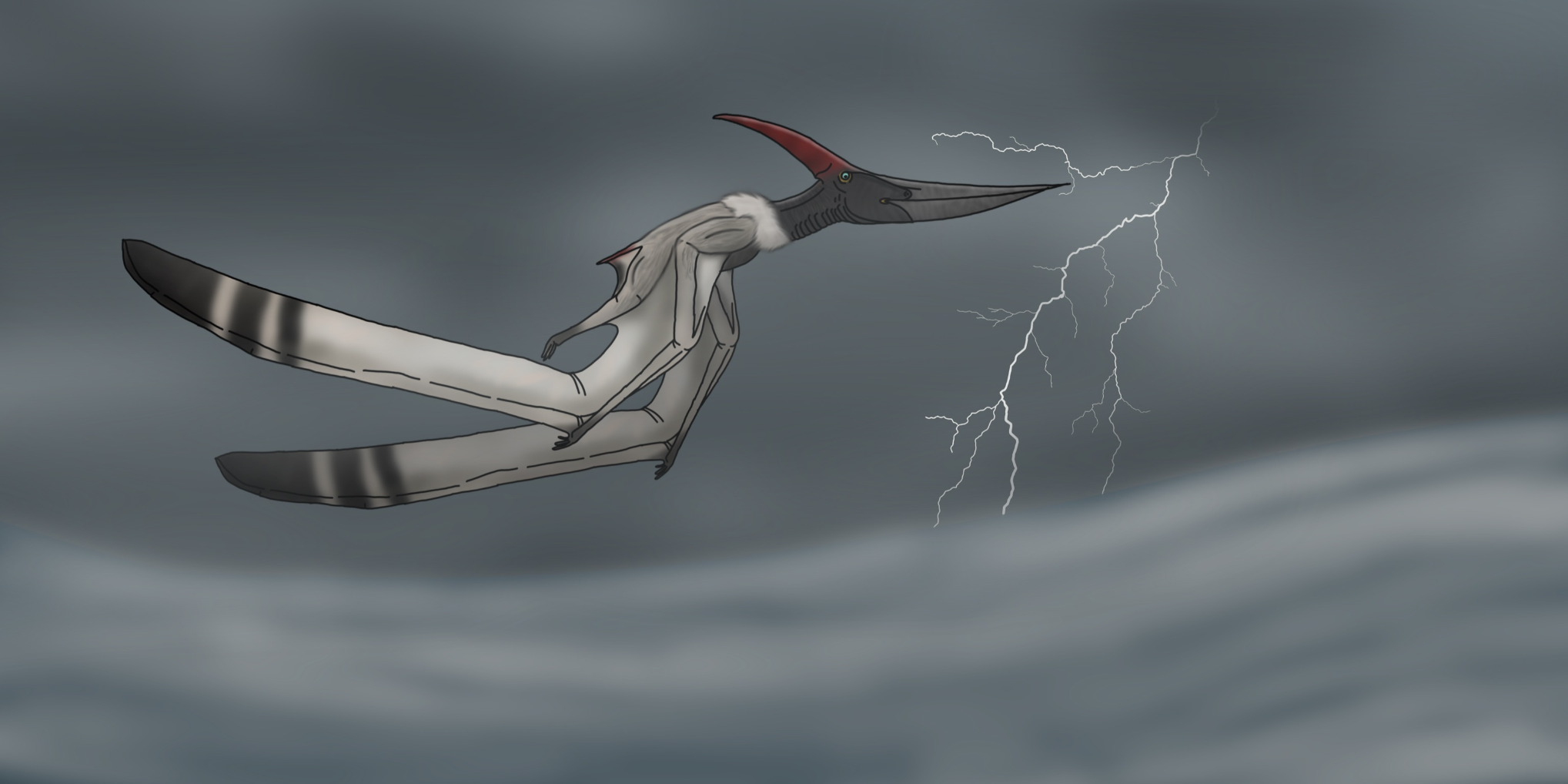 pteranodon in a thunder storm. #art #paleoart #PterosaurPtuesday #dinosaurs