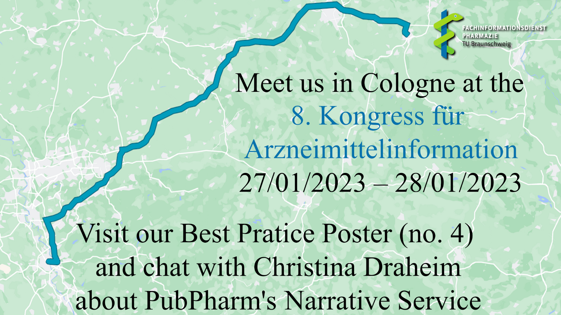 The first conference we are joining this year is the "8. Kongress fรผr Arzneimittelinformation" in Cologne, tomorrow and on Saturday.