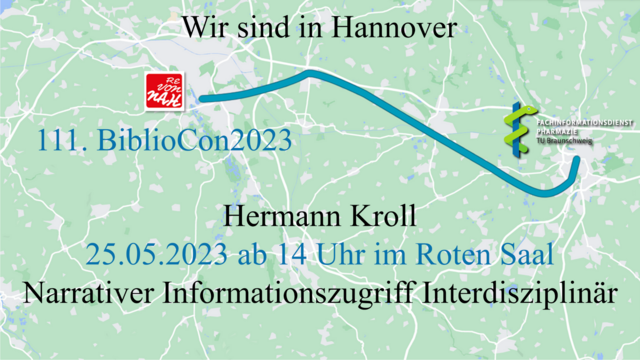 Wir sind auf der BiblioCon in Hannover! Wir freuen uns auf einen regen Austausch. Kommt gern zum Vortrag von @hkroll, er stellt dort den narrativen Informationszugriff vor und besucht gern die Fachsession Natur- und Lebenswissenschaften unter der Leitung von Stefan Wulle!