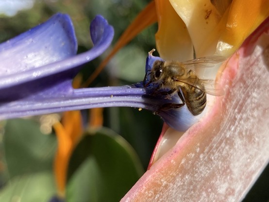 Trip to Jardín de Sitio Litre earlier this month. Delighted to see this #honeybee taking nectar from a Bird of Paradise (Strelizia regina) flower. Over 200 orchids housed in this the oldest surviving garden on the Island, apparently; it also boasts the oldest and largest dragon tree (Dracaena draco) in the town #Tenerife #PuertoDeLaCruz #gardens #flowers #bees