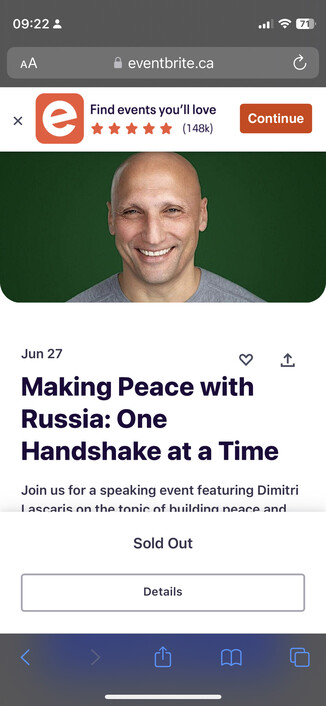 Victoria event: https://www.eventbrite.ca/e/making-peace-with-russia-one-handshake-at-a-time-tickets-652435380787?aff=oddtdtcreator