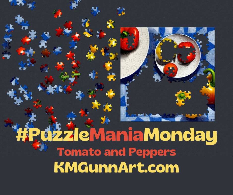 #PuzzleManiaMonday because everyone needs a bright spot for Mondays! My #DigitalArt Tomato and Peppers as a #JigsawPuzzle #GiftThemArt this #Christmas2022 #FediGiftShop #BuyIntoArt