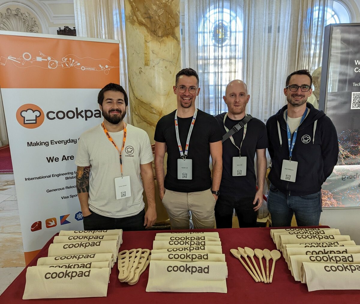 Hello PyCon UK #pyconuk #pyconuk2022 @PyConUK! Come say 'hi' 👋 to our friendly bunch of Cookpad @cookpad_dev Pythonistas in the hall. On offer: