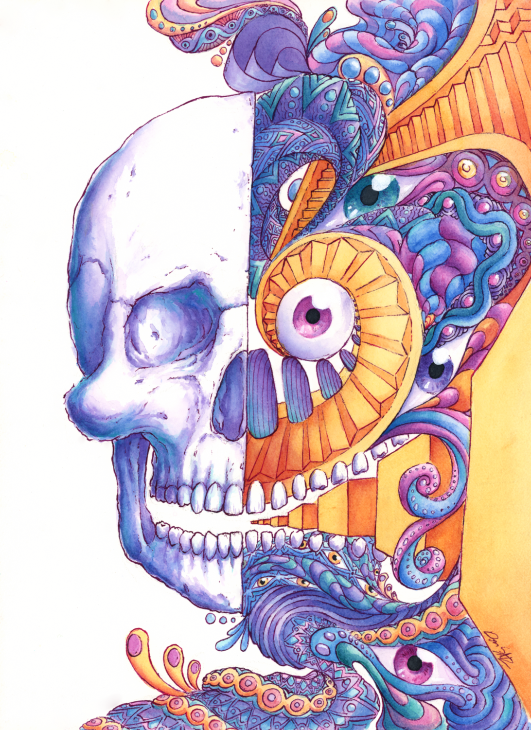 One last post of this piece, since I scanned it in and cleaned it up for the final result. #art #mastoart #creativetoots #pyschedelic #trippy #watercolor