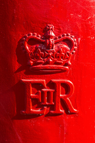 The cypher of Queen Elizabeth II on a red post box.
