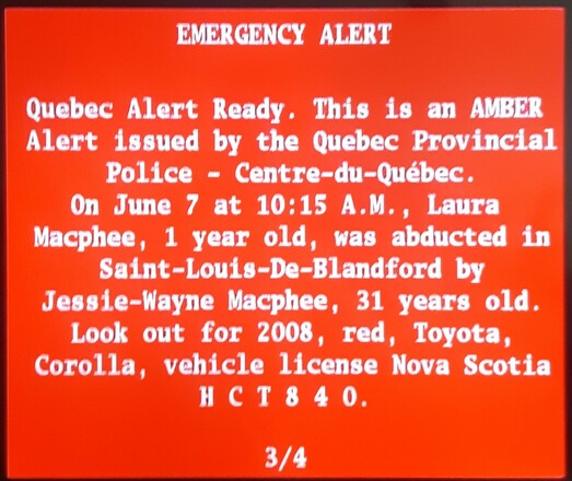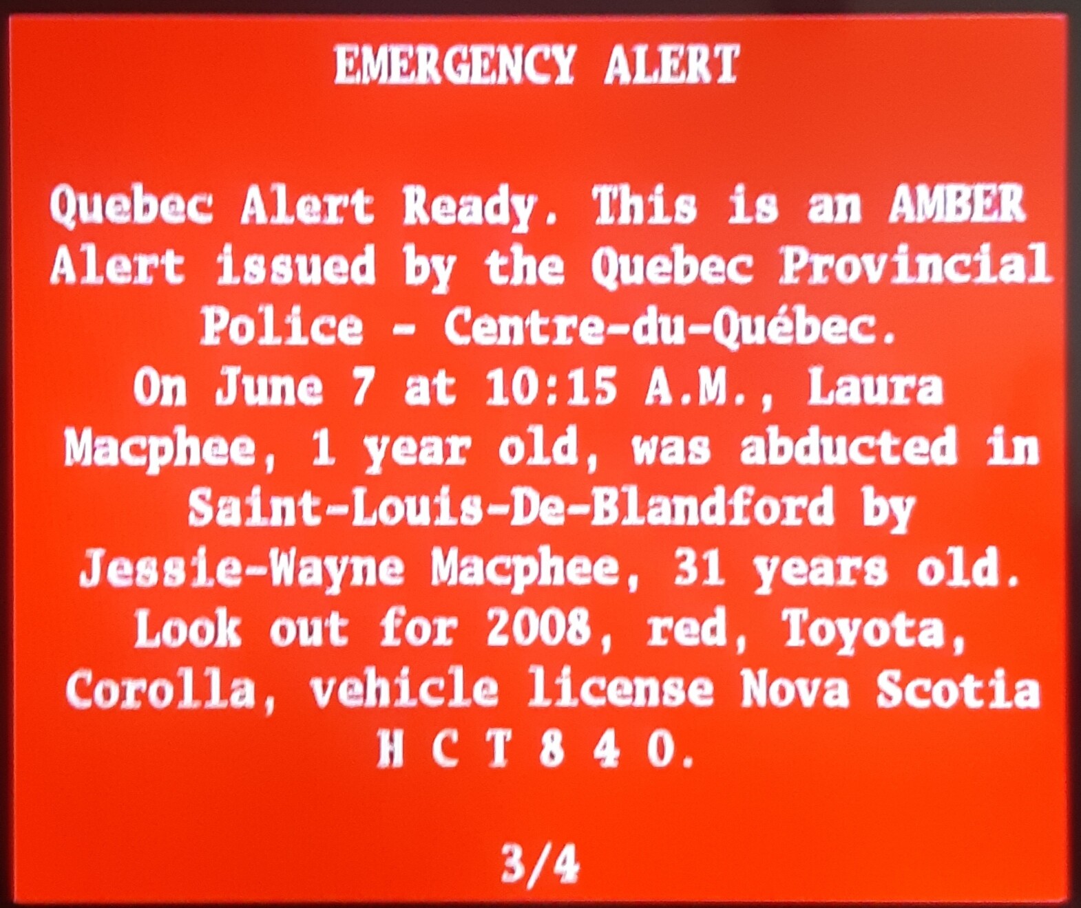 This is an #AMBER alert issued by the #QuebecProvincialPolice on June 7 at 10:15 AM.