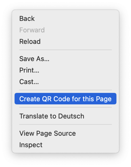 Chrome web browser: You can create a QR code for the current page via its context menu (click somewhere where there is no text or image).