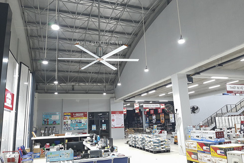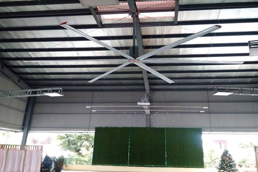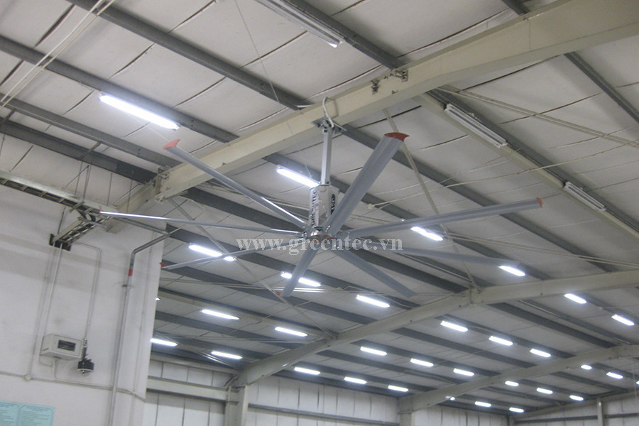 Quạt trần HVLS là loại quạt thường được dùng trong những không gian rộng lớn như nhà xưởng, nhà kho, trung tâm thương mại,... Quạt hoạt động với tốc độ chậm, lưu lượng cao nên tiết kiệm được rất nhiều điện năng so với điều hòa.