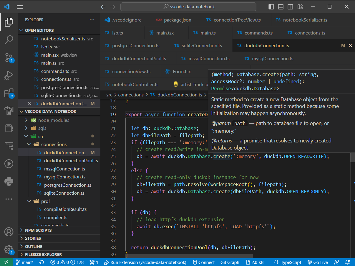 Yes! We'll support #DuckDB and most likely csv, json, and parquet local and remote data loading and data source connections in our new #QueryDataNotebooks π for VSCode. Adding DuckDB connections support ... #DataNotebooks extension dev π¬ ...