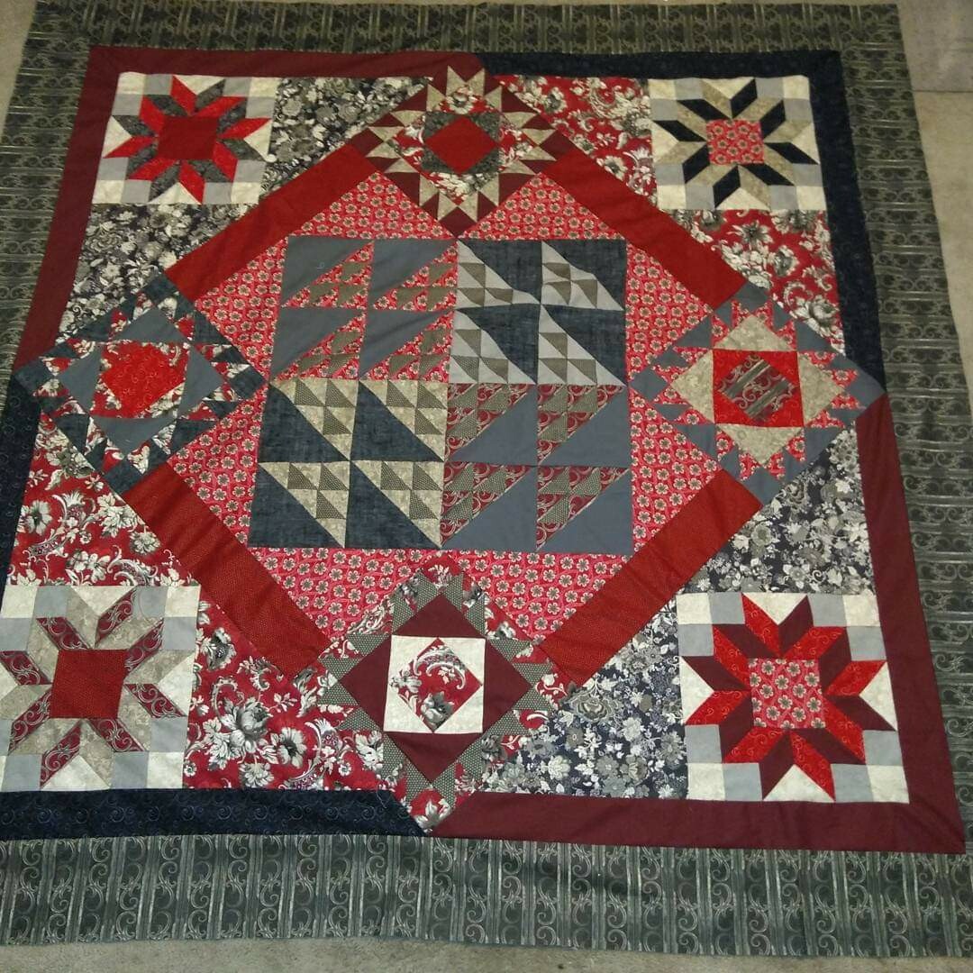 Any other #quilters over reach when they pick patterns? First time making flying geese and I pick a pattern with 160 of them. I love how it came out. Doing something more simple next time. Whew! #quilt #fiberarts #artofmastodon #artistsonmastadon