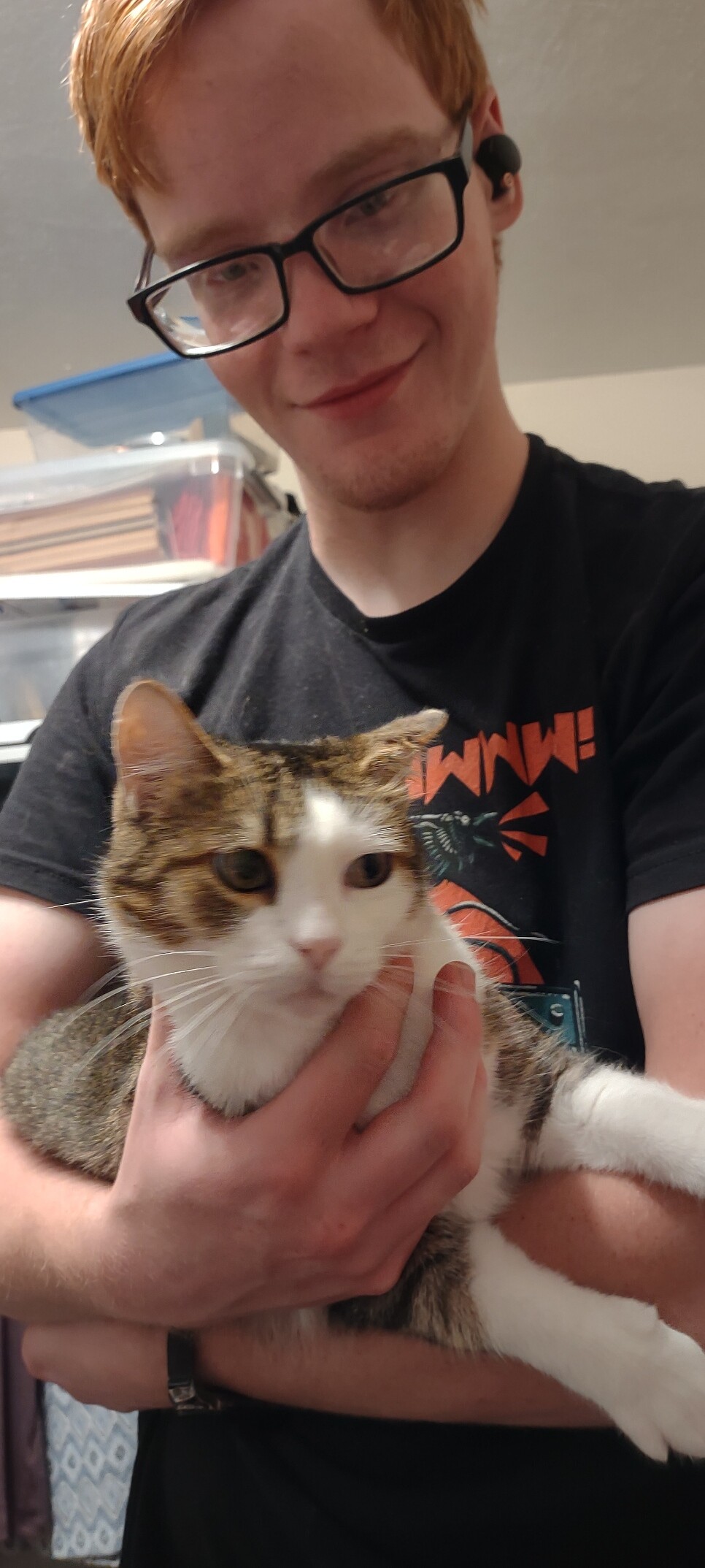 The old girl doesn't normally like being held but the 19 yo has slowly gained her trust. #catsofmastodon #catstodon #quiltlovinlisa