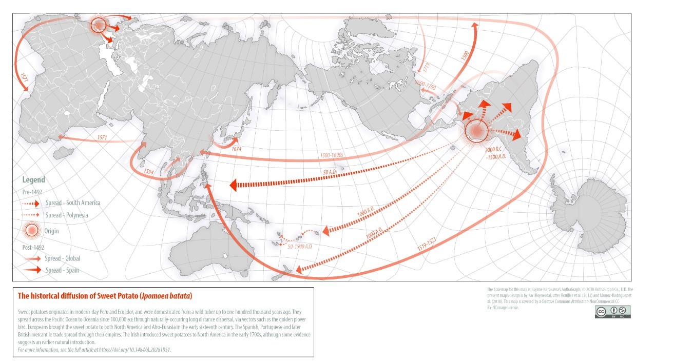 The project has its own website including what they call "New-Columbian-Exchange-Maps" for #tomato, #sweetpotato, #sugarcane, #maize and #quinine: