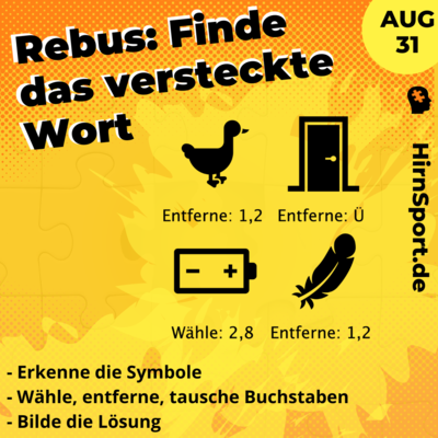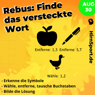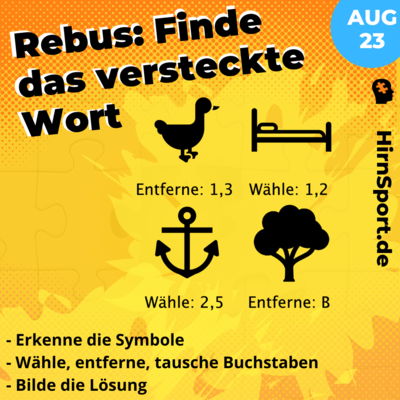 #rebus: Erkenne die Symbole. Tausche, entferne oder überspringe die Buchstaben & setze das Lösungswort zusammen.