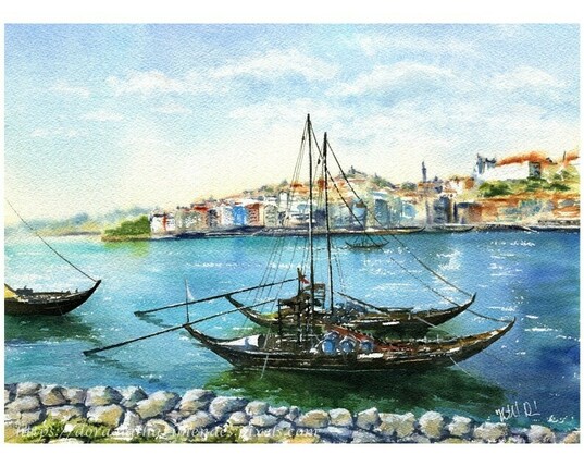#porto #portugal #portuguese #MastoArt #art #paintings #watercolor #watercolour #rabelo #boats #bridges #artist #portugalpaintings