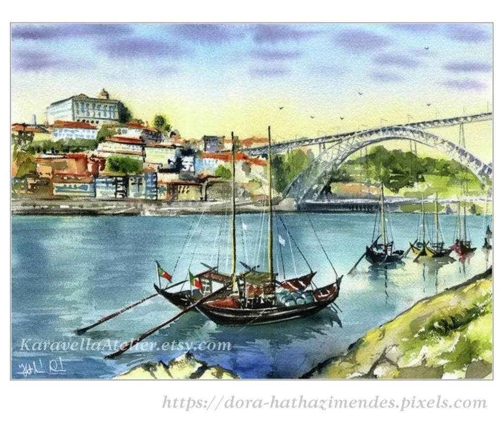 Porto Douro River and Rabelo Boats 🎨🇵🇹
