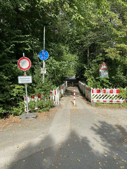 Wirklich alles am Straßenschild #RadfahrerAbsteigen ist ein Indiz grober Fahrlässigkeit der Straßenverkehrsbehörden und allen, die es sonst noch aufstellen.