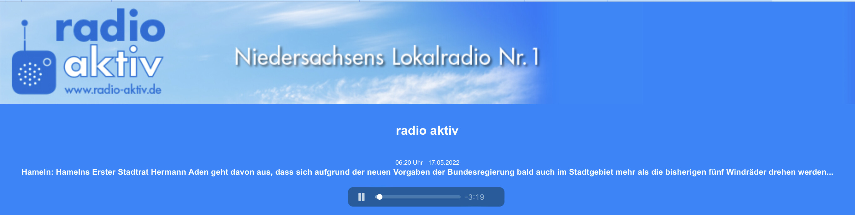 #radioaktivHM. #Hameln: Hamelns Erster Stadtrat Hermann Aden geht davon aus, dass sich aufgrund der neuen Vorgaben der Bundesregierung bald auch im Stadtgebiet mehr als die bisherigen fünf Windräder drehen werden... http://listen.radio-aktiv.de/beitraghoeren.php?id=38583