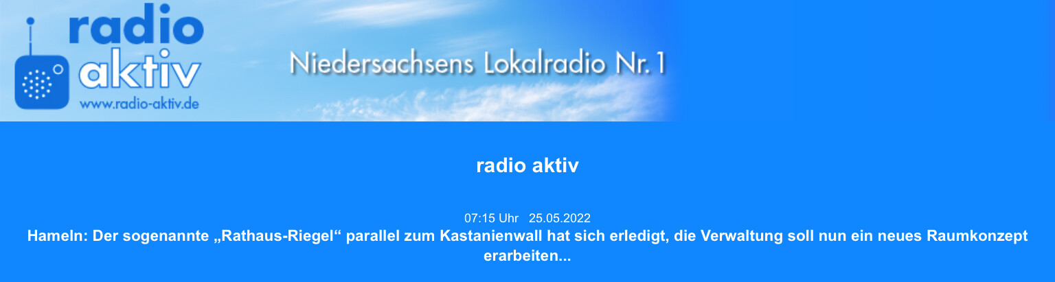 #Hameln: Der sogenannte „Rathaus-Riegel“ parallel zum Kastanienwall hat sich erledigt, die Verwaltung soll nun ein neues Raumkonzept erarbeiten... #annettHM http://listen.radio-aktiv.de/beitraghoeren.php?id=38636