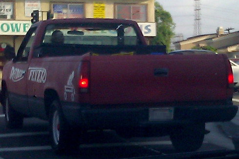 Another one: A pickup truck painted like a Radio Flyer red wagon, spotted in 2011.