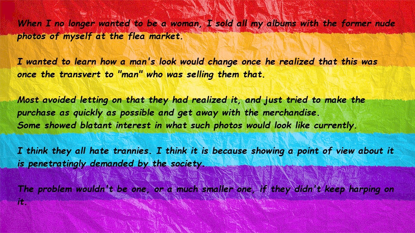 I do not know whether it is suitable here and whether it is art at all to pack the message, which someone wanted to communicate to the world here, into a #rainbowflag, but then apparently to have considered that it is not readable in such a way and therefore hardly communicable, to spread it out again.
