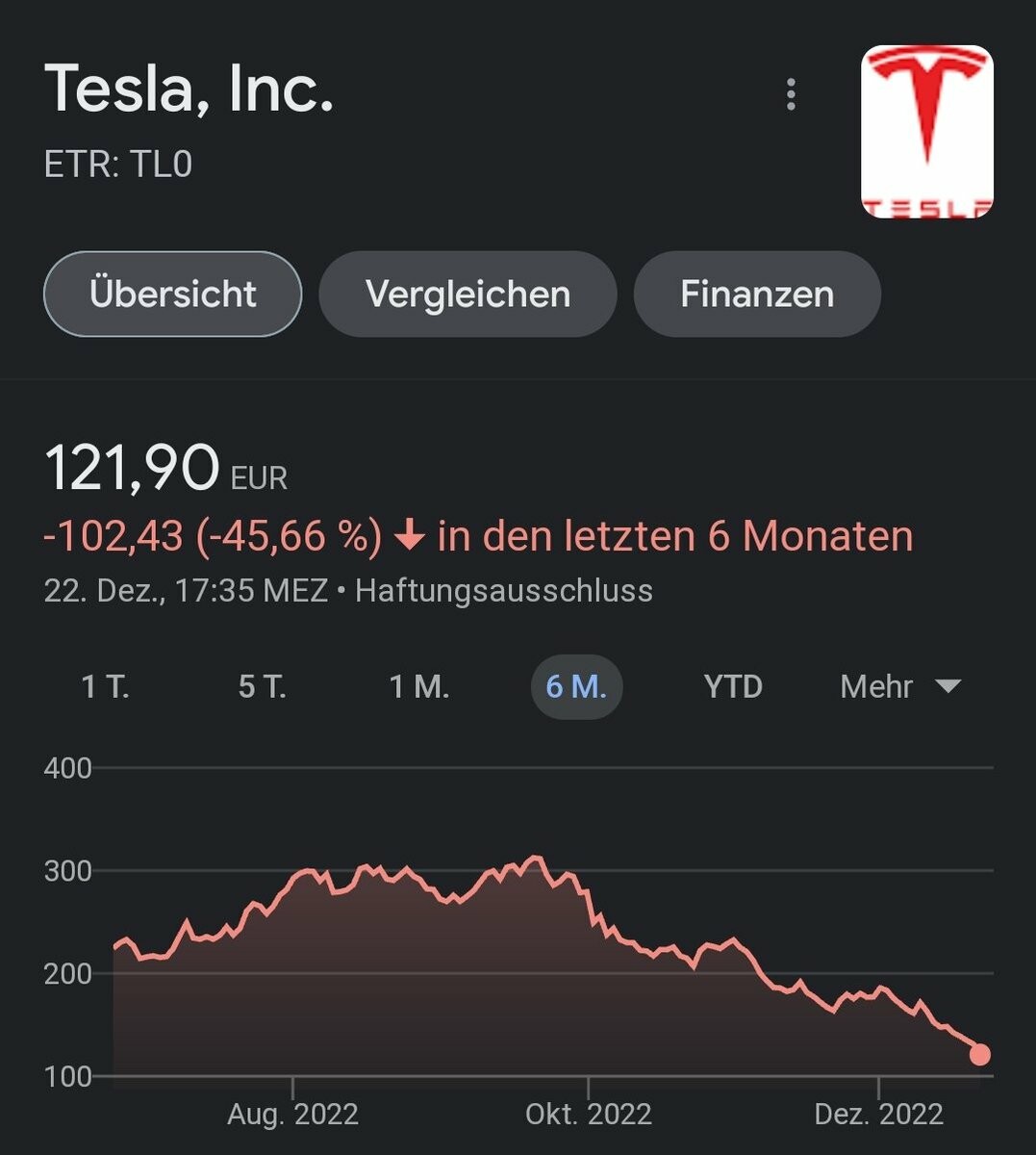 100 € von einstigen 300 € sind nach Elon's wilder Trümmerfahrt 2022 noch übrig.