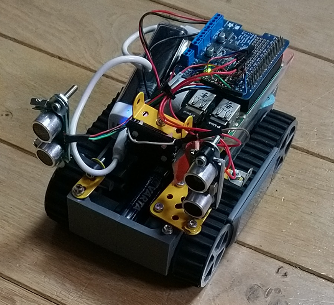 Je suis parti d'un base de Robby RP5 dont j'ai viré toute l'élec. J'avais déjà monté un truc avec des meccano dessus et un #raspberrypi2, mais c'était un peu brinquebalant, et le Rpi était alimenté par un chargeur USB encombrant.