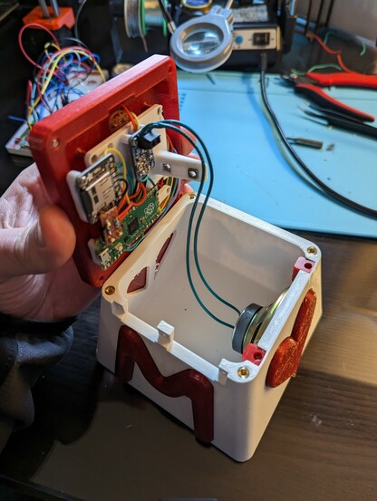 Made a big milestone with the #momobox: got it packaged and did some end user testing! Finished the new #3dprinted enclosure and soldered the #raspberypi #pico to the other components over the last couple of days. 🤓