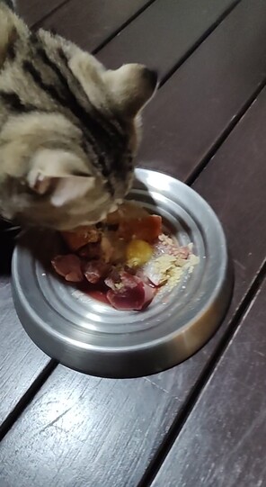 just fed peanut supper...but nothing for me sob sob...he really likes turkey...and the ac is right, he isn't too fond of red meat this boy 🤦🏻♀️