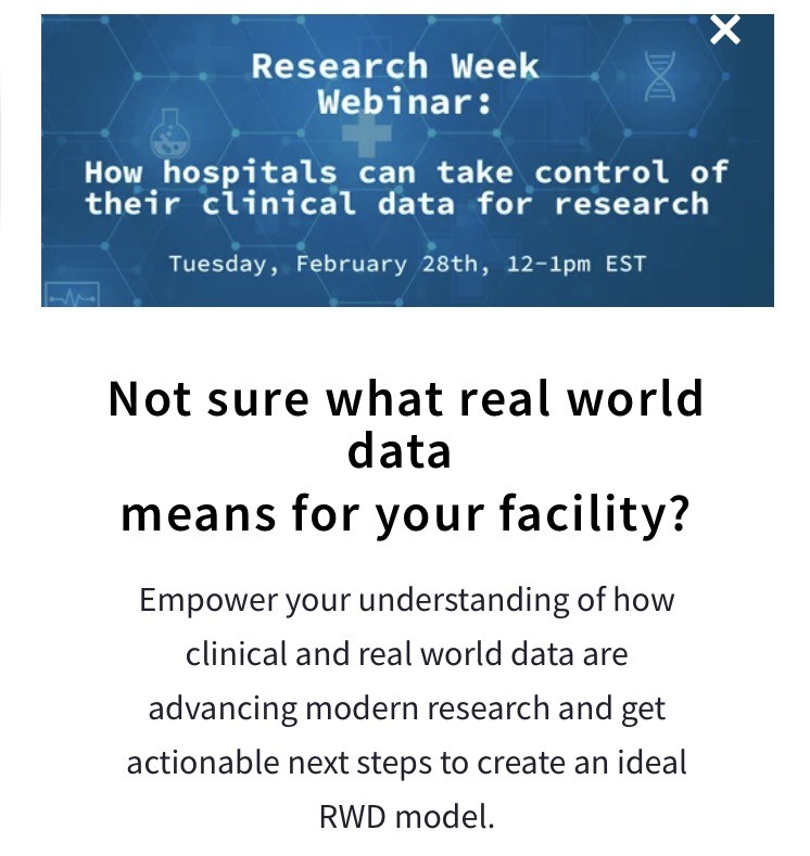 Interested in #healthanalytics #realworlddata? #ClinicalResearch? Join us for this #webinar on taking control of your facilities clinical data for research! Please retoot for greater exposure!