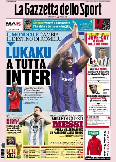 #chelsea #lukaku #juve #rebellin #qatar2022 #argentina #australia #edicola #primapagina #rassegnastampa