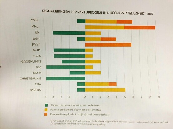 'Rode kaarten zijn uitgedeeld voor voorstellen in de programma’s van de VVD, PVV, CDA, SP, SGP, Forum voor Democratie en JA21.'