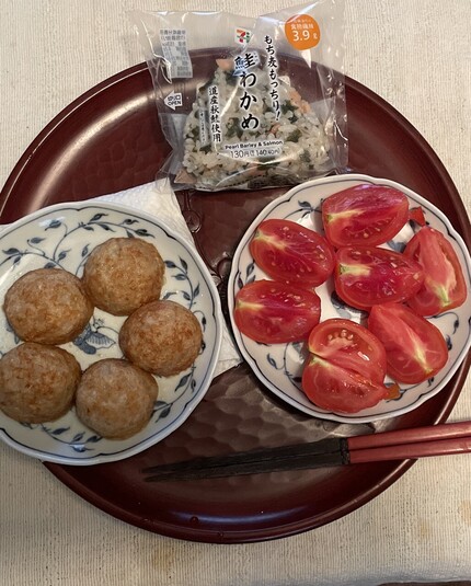 前日比0.3kg増目標まで4.8kg。病み上がりで今度はリンパが痛くなってきた(寝て起きたらそれほどではなくなってる)。昼ごはんはリンク先のレシピをありもので作る(トマトジュースの代わりに刻んだチョコトマト、ミックスビーンズの代わりに小豆、というくらいの適当ぶり)。