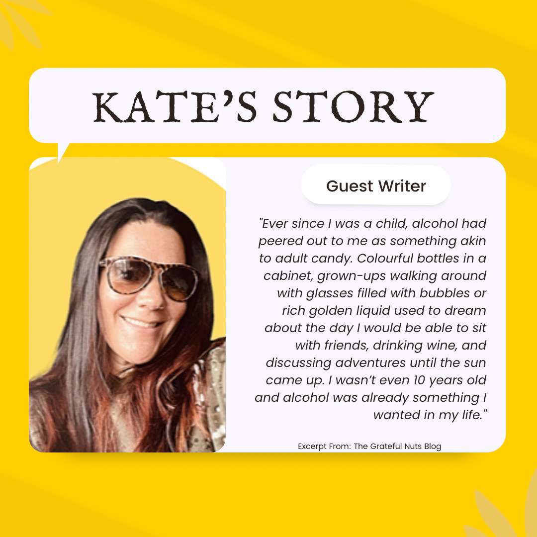 A mum of two who went from passed-out to present when she ditched her bottle-a-night wine habit. Known as @walking_the_straight_line on Instagram, Kate talks about her journey to sobriety in a fun and light-hearted, and honest way.