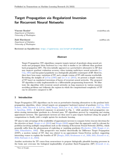 Target Propagation via Regularized Inversion for Recurrent Neural Networks