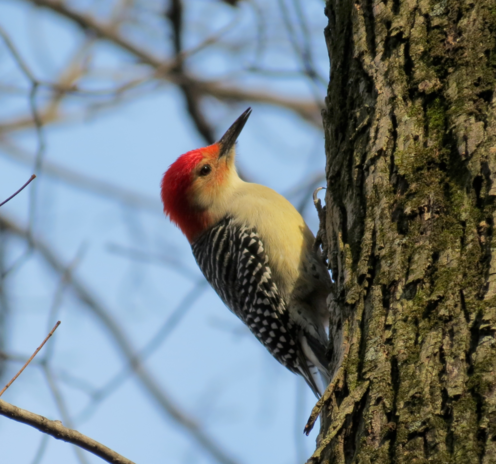 This male red bellied woodpecker looks a bit disheveled. I took this picture in January, maybe the wind was blowing that day.