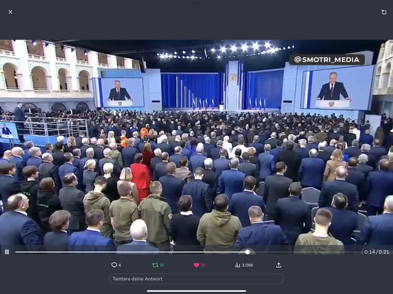 Der zynischste Augenblick in der #Rede_zur_Lage_der_Nation des Wahnsinnigen. Er bittet um eine Schweigeminute für die Toten in der #Ukraine. Für die Toten die er selbst zu verantworten hat!!