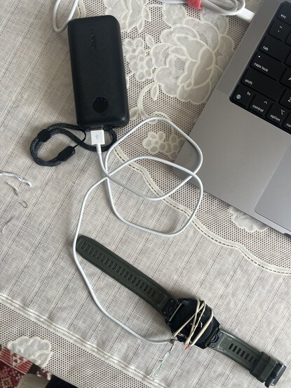 When you love your #garmin watch but you forgot the charging cable for a two-month trip. #diy #redneckengineering