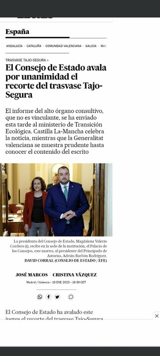 El Consejo de Estado da la razón a la #RegióndeMurcia y asume las alegaciones que presentamos desde el Gobierno para evitar el recorte del trasvase Tajo-Segura.