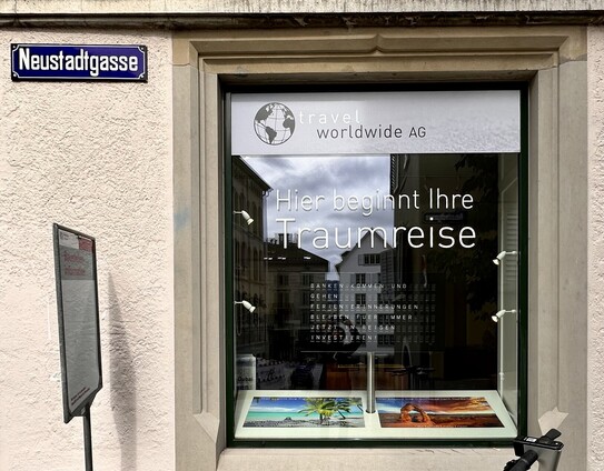 Sehr coole #Werbung! Bild mit Doppelklick vergrössern und das Kleine im Schaufenster lesen… #Reisebüro #Zurich #Switzerland #Banking #CreditSuisse #UBS