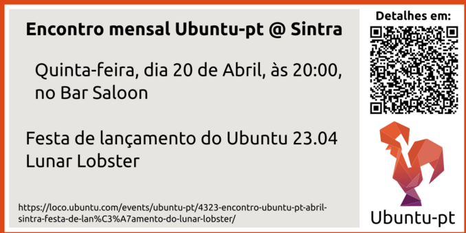 Mais logo estaremos no Saloon em Sintra no nosso encontro mensal a comemorar o lançamento do @ubuntu 23.04 #LunarLobster.