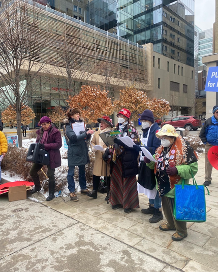 Join us today and speak up about Ontario’s healthcare crisis! Join our speakers’ corner with special guests Toronto’s Raging Grannies, who will be protesting Bill 7.
