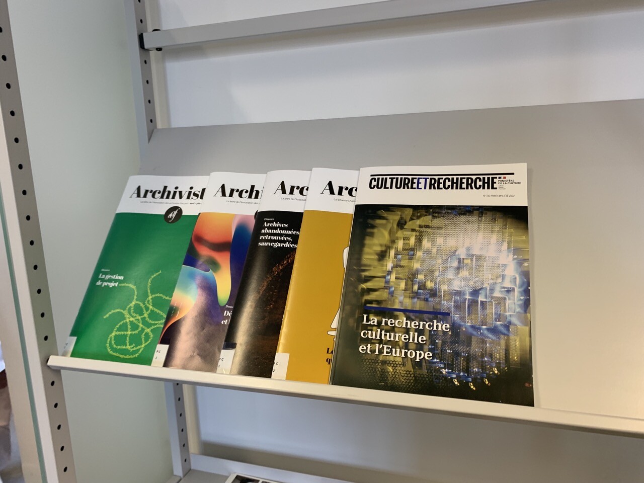 Pause café dans la bibliothèque du Mucem Lab : « Archivistes ! » est bien placé cc @clairelarrieux #resaw2023