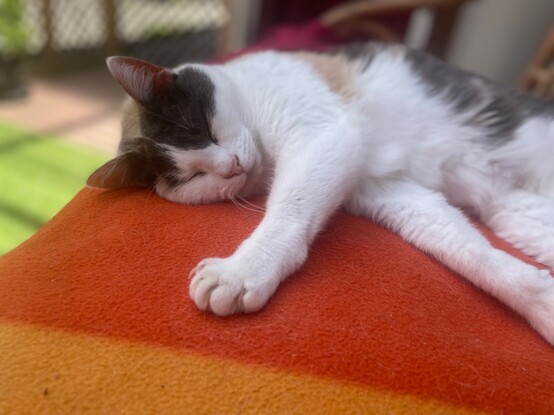 She still likes quiet, and still goes hiding away from everyone, but she also interacts. She sits on laps, and asks for strokes, likes being groomed and held.